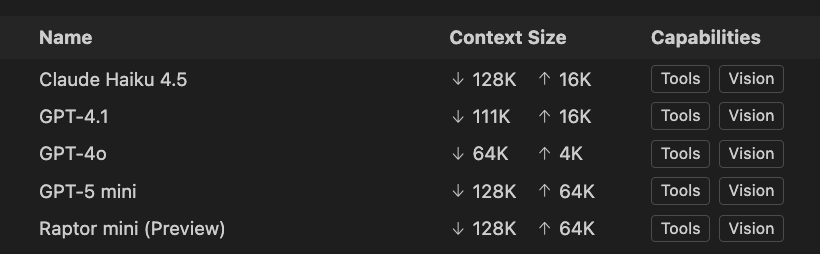 Preview and editor-focused models—such as Raptor in VS Code’s free tier—are interesting not because of raw limits, but because of how they’re tuned. The new Raptor mini model is basically a fine-tuned GPT5 mini by Microsoft.
